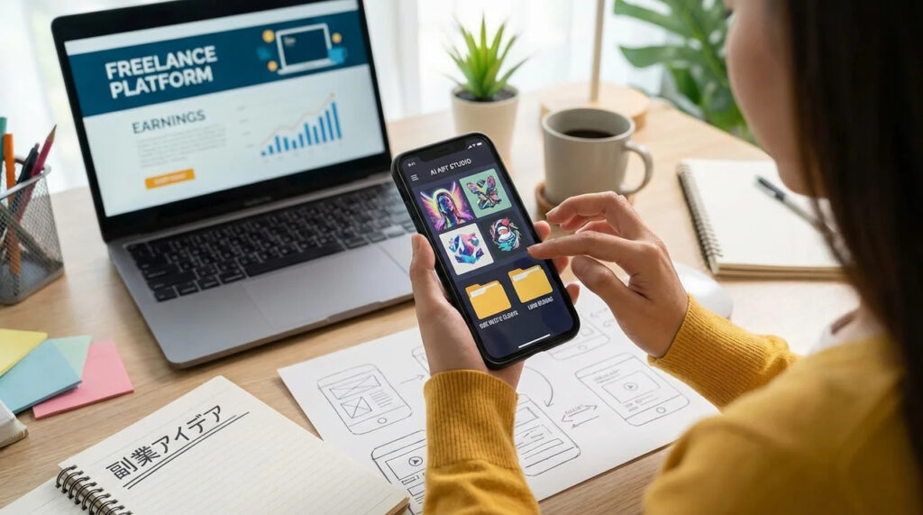 AI画像生成やSNS用デザイン制作は、スマホ表示前提のコンテンツが多いため、スマホ作業と相性の良い分野です。