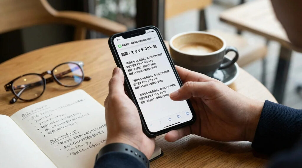 メールや企画書の下書き作成は、文章中心の業務であるため、スマホでも完結しやすいAI副業です。