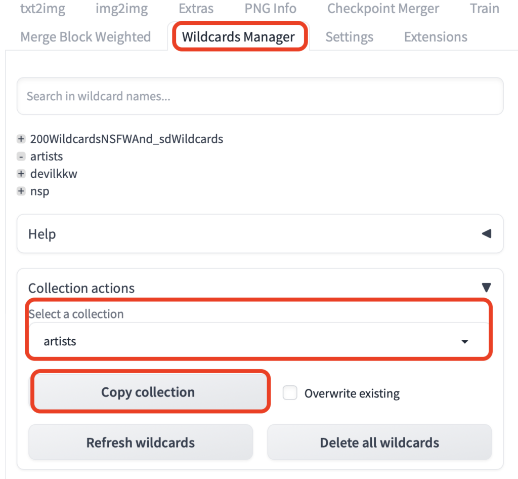 上部タグからWildcards Manager を選択します。