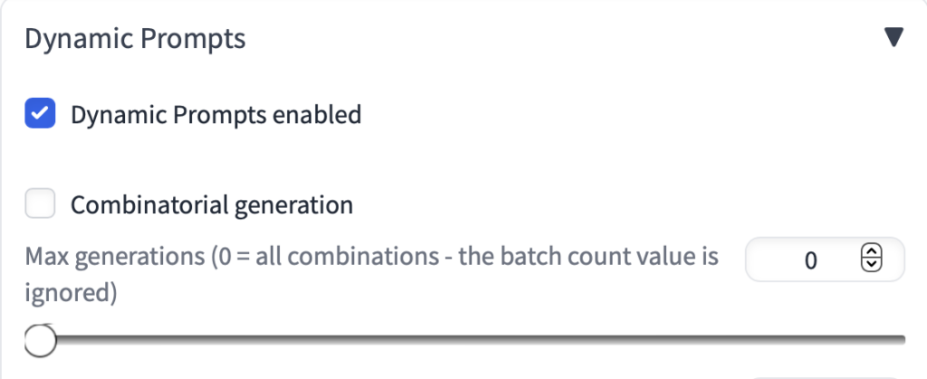 Dynamic Prompts enabledにチェックを入れて、有効にします。