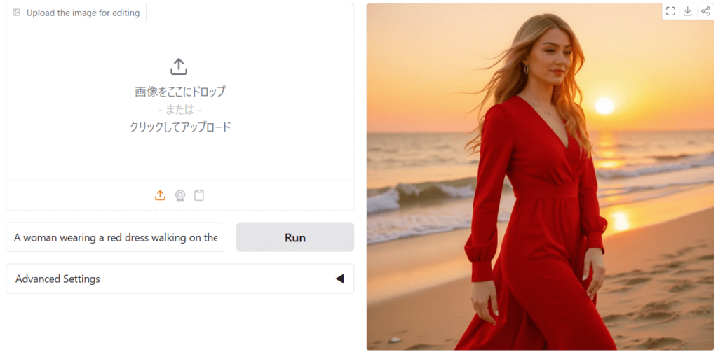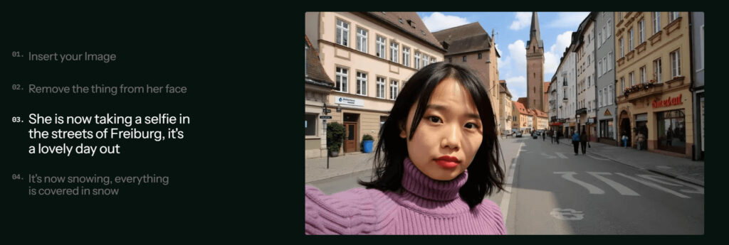 例えば、「冬服を着た人物の画像」を参照画像として読み込ませて、「季節を夏にして、半袖の服に変更」と指示するだけで、構図や人物の特徴を保ったまま自然に夏服姿に変換してくれます。今までの画像生成AIでは難しかった、このような“一貫性のある変換”が簡単にできるようになったんです!