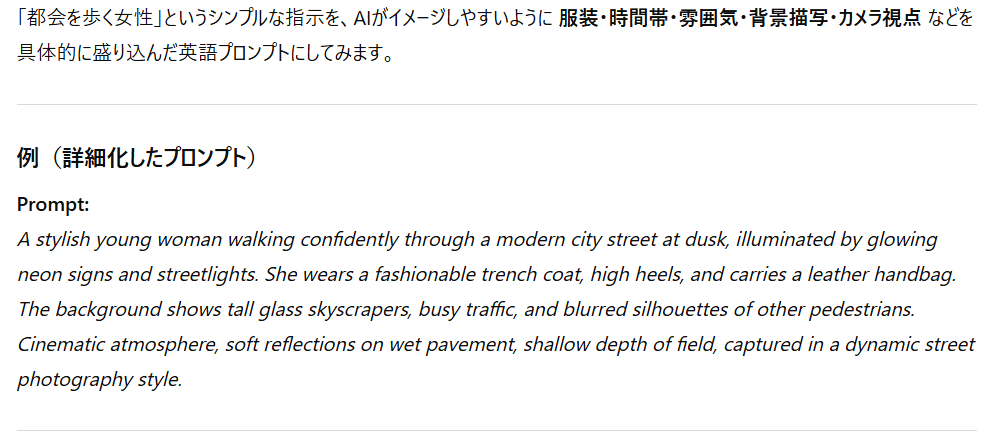 - プロンプトは英語で詳細に記述し、構造化することで理想の画像が生成できる