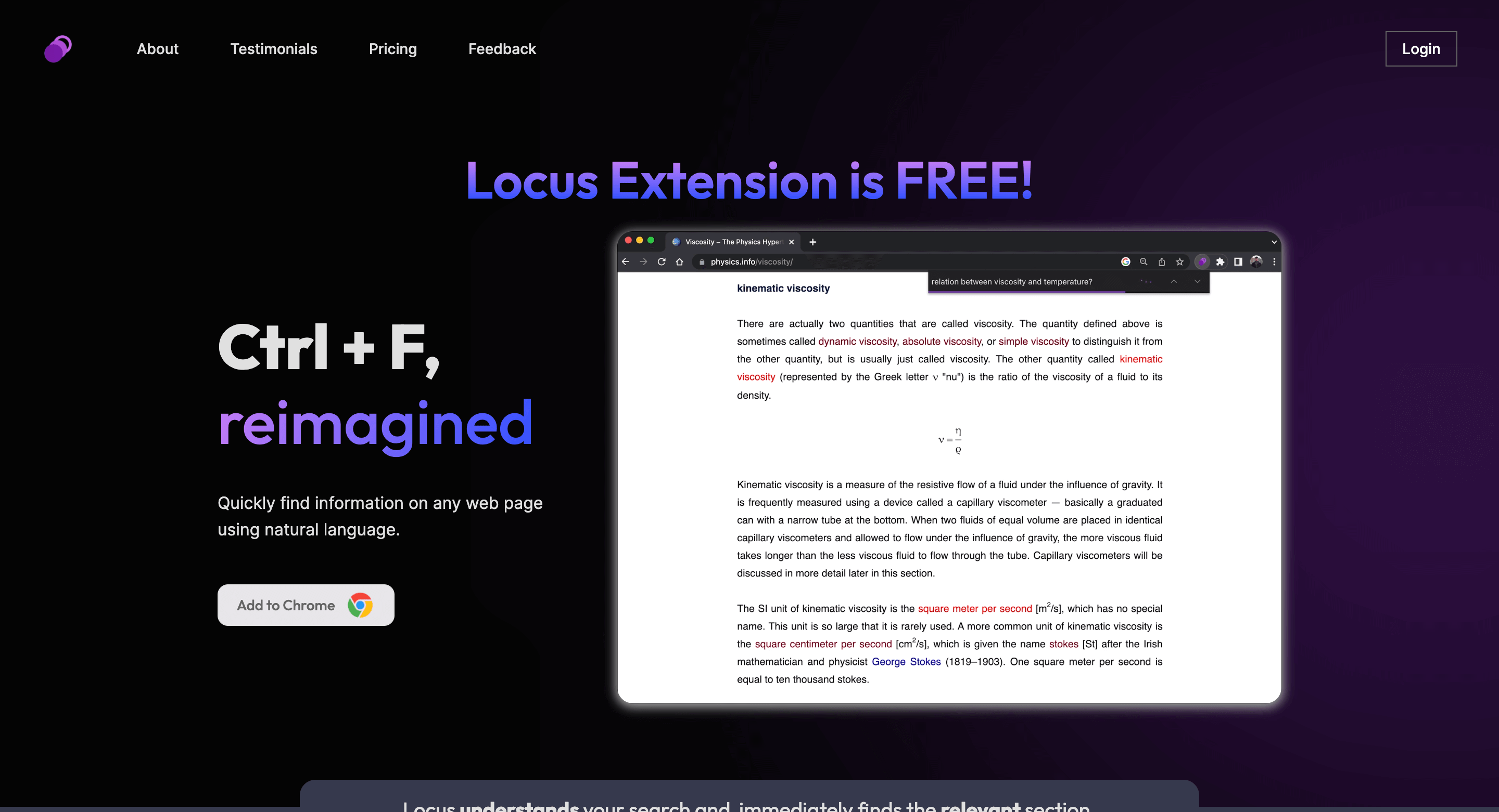 Locus Extensionは、自然言語を使用して任意のWebページ上の情報を迅速に見つけるためのツールです。通常のCTRL + Fでは不可能な検索を行うことができます。