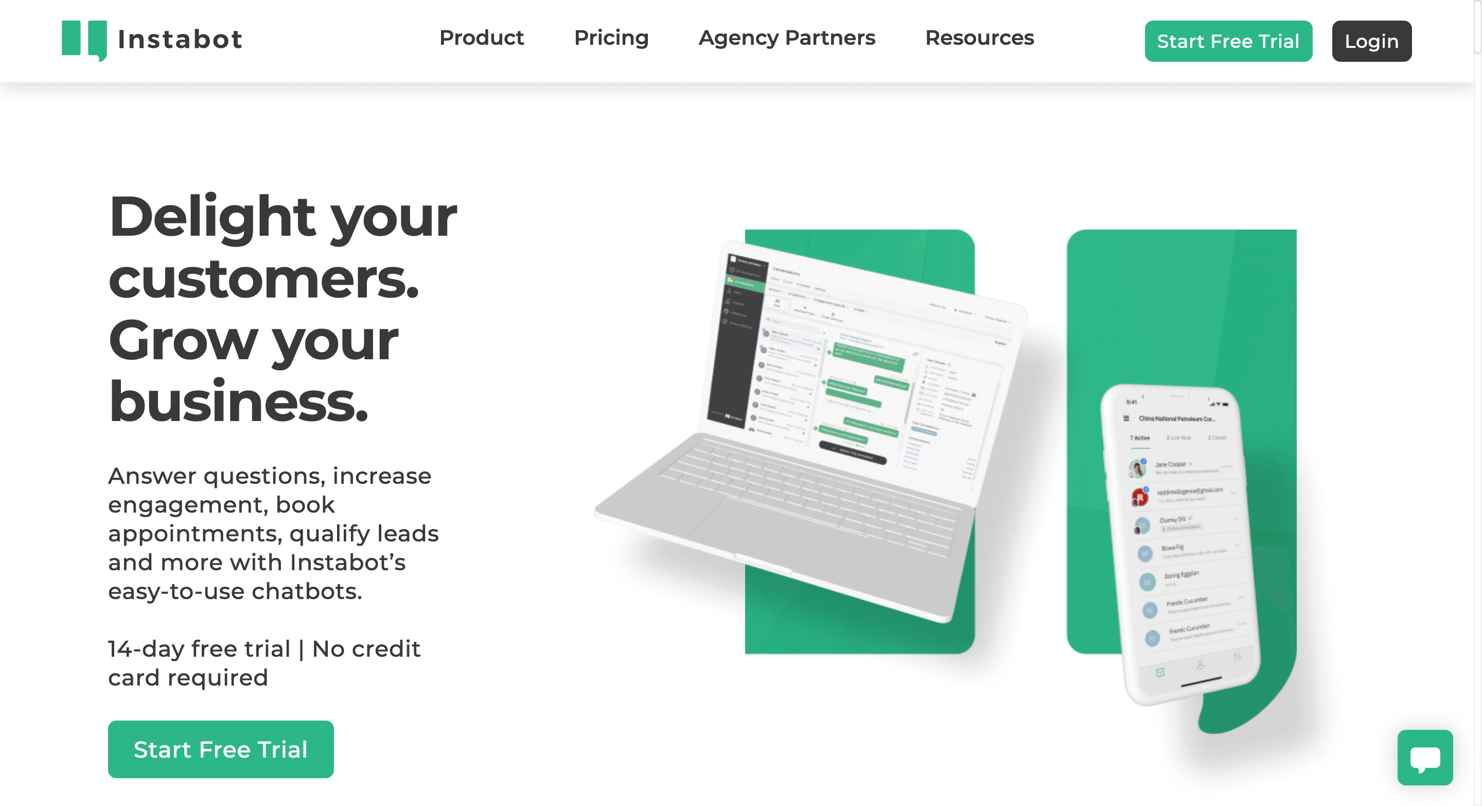 Instabotは、質問の回答、エンゲージメントの増加、予約、リードの資格付けなどを容易にするチャットボットを提供します。