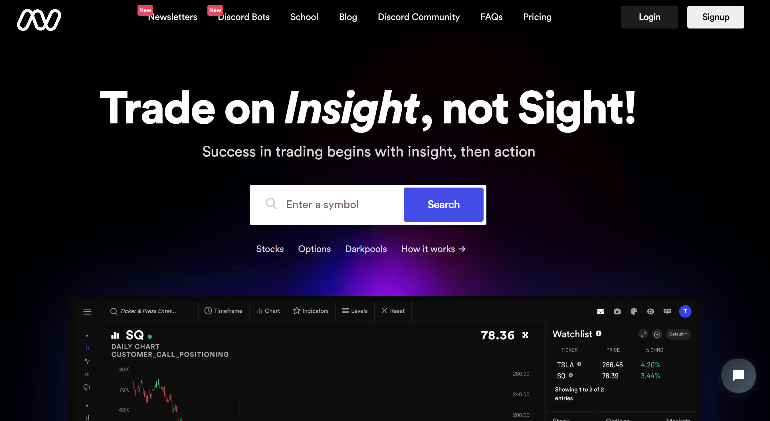 Tradyticsは、AIを活用して株やオプションの取引の洞察を提供するトレーディングプラットフォームです。